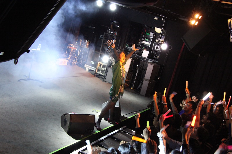 MCでは、挨拶こそ現地の言葉で行なったが、その後はほぼ日本語でのトーク。通訳も介さずに日本語を理解して即座にリアクションをしてくれる台湾のファンに「まるで日本でライブをやってるみたい!!」と飛び上がらんばかりに喜びを身体を使って表現。