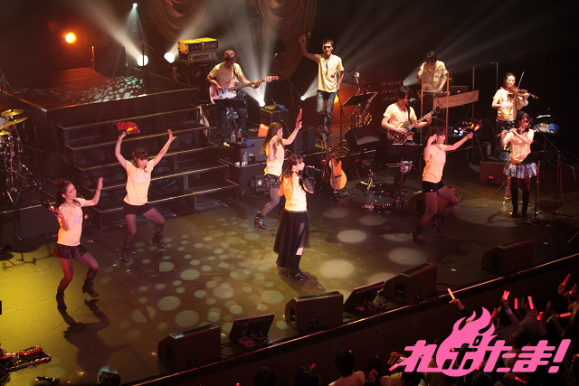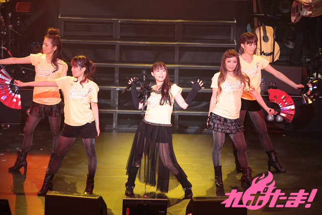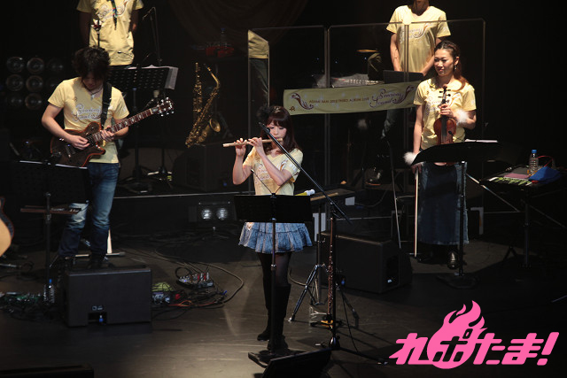 アンコールではメンバー全員が黄色のライブTシャツで登場。+Aの演奏家友達でフルート奏者の宮地夏海さんも登場。1日働くと次の日寝こむという宮地さんのあだ名が『しかばねちゃん』と紹介されると会場は大きな笑いに包まれた。アンコールの最初に披露されたのは『散花の祈り』。観客は赤色のサイリウムを、ダンサーは手に扇を持ちアンコールの1曲めを盛り上げた。