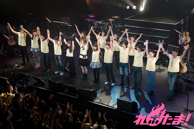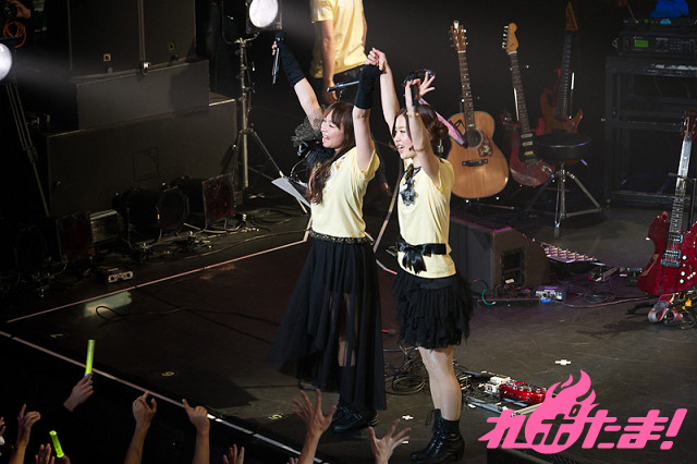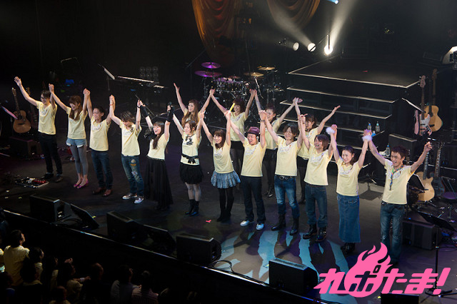 アンコールの最後にはゲストの原由実さんも黄色のライブTシャツを着て合流し『いっしょ。』を披露。観客同士で肩を組んだり、曲に合わせ両腕を左右に揺らし「ららら〜♪」の大合唱で会場全体が一体となりライブを締めくくった。