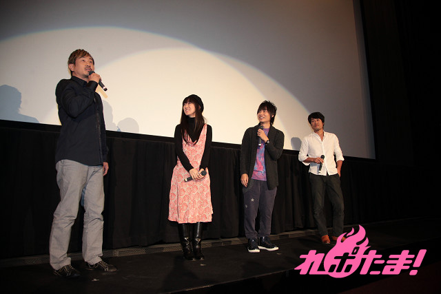 当日は主人公・奥村燐役の岡本信彦さん、藤本獅郎役・藤原啓治さん、劇場版から登場したリュウ・セイリュウ役の木内秀信さん、そして急遽出演が決定した、うさ麻呂役の釘宮理恵さんが登壇。上映を終えたファンの前でトークを繰り広げた。