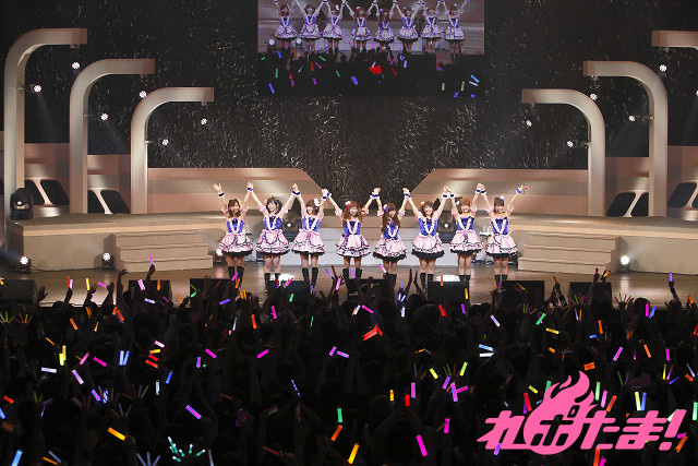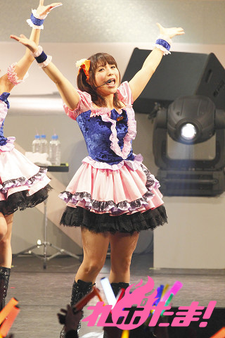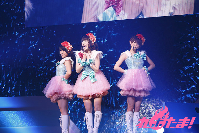 内田さんが白いサイリウムが輝く中で、ホイッスルを鳴らしながら「ぶる~べりぃ♡とれいん」、飯田さんは猫耳姿で「恋のシグナルRin rin rin!」、そして新田さんは「Someday of my life」を情熱的に歌い上げた。