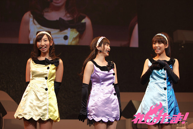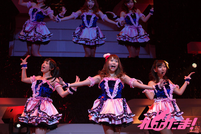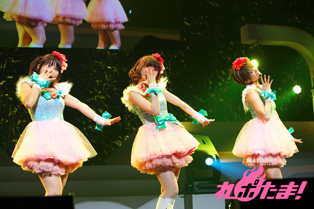 3人によるライブ恒例の質問タイムもあり、「お年玉をもらった人!」、「餅つきをした人!」、「初詣行った人!」というファンへの質問に大きな声で応えるオーディエンス。意思の疎通が整ったところで「知らないLove*教えてLove」、「あ・の・ね・が・ん・ば・れ!」を披露。3人の息の合った歌とダンスに呼応するようにサイリウムがリズミカルに振られた。