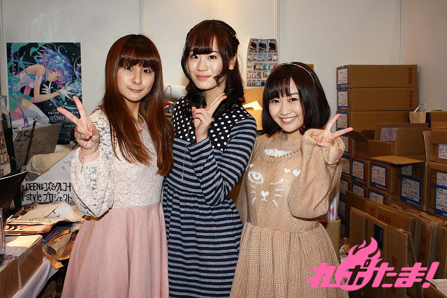 12月30日(日)には、沼倉愛美さん&瀬戸麻沙美さんによる最新音楽企画『音楽少女』から熊谷絵里役の瀬戸麻沙美さん、バーチャルアイドル『岸本パプア』シリーズの第二弾として12月28日に発売されたCD「ゆらゆらミサイル」を歌う岸本パプア役の大亀あすかさん、さらにcosmic recordとIOSYSによる大人気コラボ企画『電波ソング通信部』で松嵜麗さんや三上枝織さんと一緒に電波ソングを歌っているニコラ・T・藤井役の吉田有里さんが販売スペースに登場し、お渡し会イベントに参加。