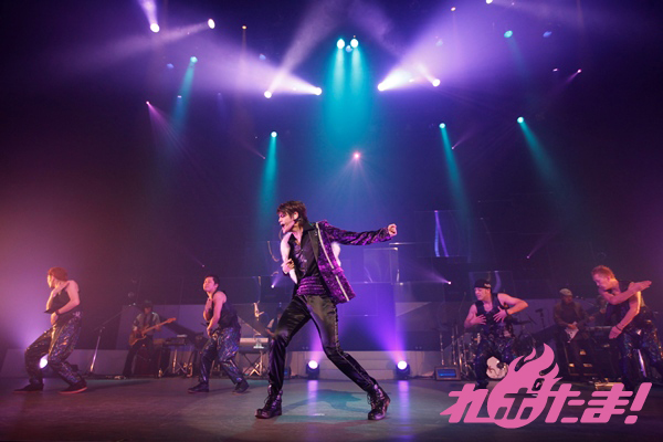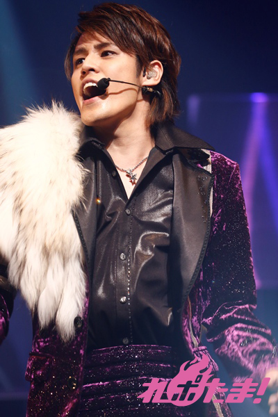 紫ジャケットの右肩に白いファー、黒いパンツという衣装で登場し、1曲目には昨年11月にリリースされた最新シングル「ULTRA FLY」を披露。2曲目「J☆S –remix-」に続いての「EGOISTIC –Long remix-」ではステッキが登場し、ダンサーと共にステッキパフォーマンスを披露。怒涛のダンスナンバーに会場のテンションもいきなりMAXに!