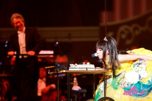 「ジュリエット」「リプレイマシン-custom-」と懐かしいナンバーを続けた後、舞台上にはフルオーケストラライブらしからぬ(?)大きなジュークボックスセットが登場。新曲「Lovely Fruit」をキュートに、そして「星屑シンフォニー」を伸びやかな歌声で披露した。