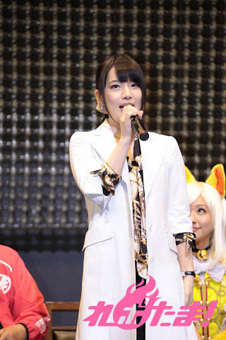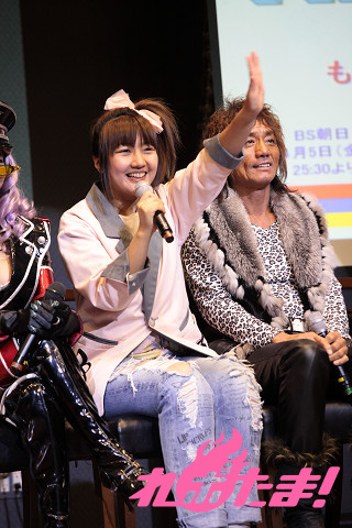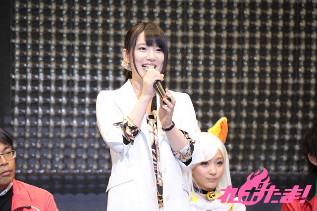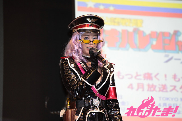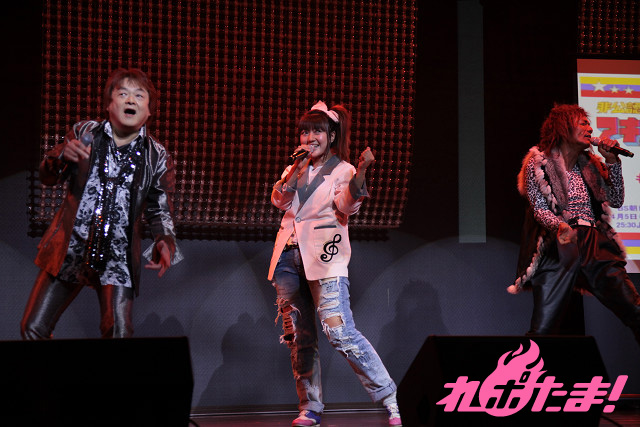 まずは主題歌の歌唱。桃井はるこさん、山形ユキオさん、MoJoさんが登場し「アキバレンジャー シーズン痛!」を熱唱。集まった約100名のファンは熱狂の渦に。