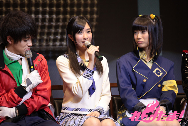 赤木信夫/アキバレッド役の和田正人さん、石清水美月/アキバブルー役の澤田汐音さん、横山優子/アキバイエロー役の荻野可鈴さん、葉加瀬博世役の内田真礼さん、三田こずこず役の愛川こずえさん、そしてマルシーナ役の穂花さん、そして田崎竜太監督が登壇。