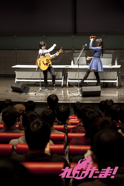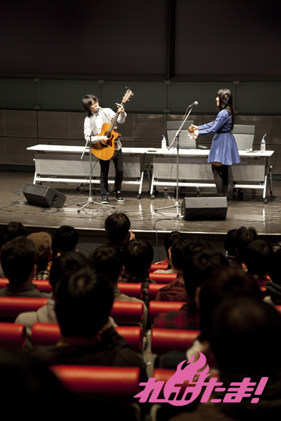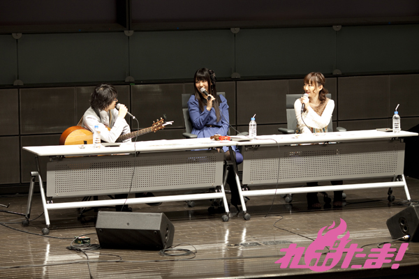 ちょっと遅めのバレンタインデーということで観客全員に配られたマーブルチョコを一緒に食べながら、まずは昨年12月2日に開催されたmarbleの5周年感謝祭の時の思い出話や、放送が無事終了した『ひだまりスケッチ×ハニカム』の打ち上げマル秘トークを披露。