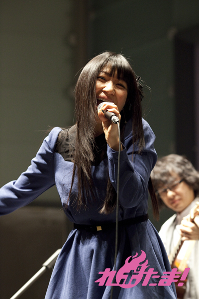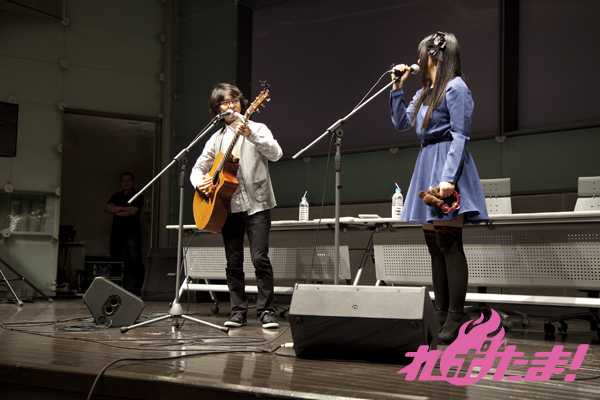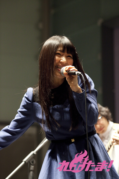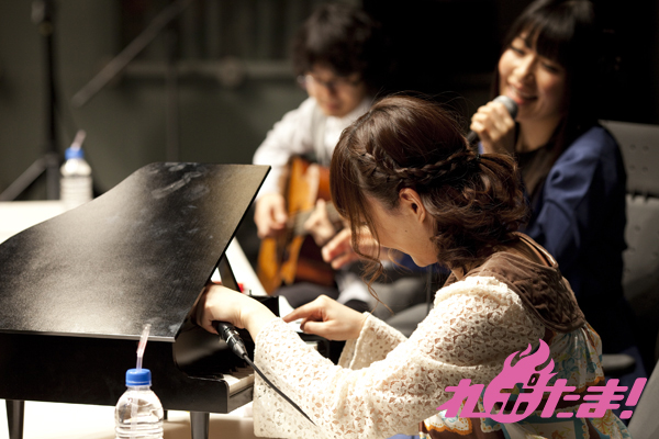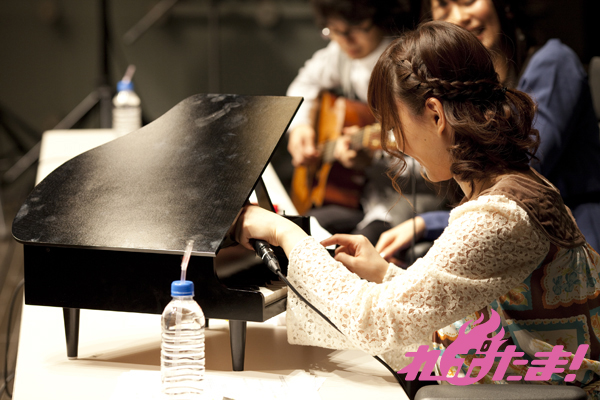 そんな「幸せ日記」をmarbleと阿澄さんがセッションすることに。micconさんの歌声と菊池さんのギターに、一本指奏法のトイピアノで阿澄さんが必死に伴奏。そんな阿澄さんによる予定外のピアノソロも飛び出すなど、3人によるほのぼのとしたステージに会場からはあたたかい拍手が送られていた。