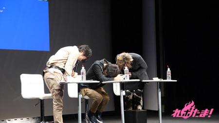 ハイテンションで勝負にいった鈴村さん、KISHOWさんに対し、岡本さんは見事にオチを決め、ふたりから絶賛された。