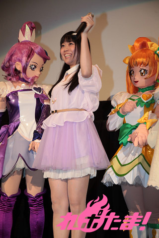 自ら演じたプリキュア戦士のキメゼリフと共に自己紹介し、満員に膨れ上がったファンからは拍手が上がった。