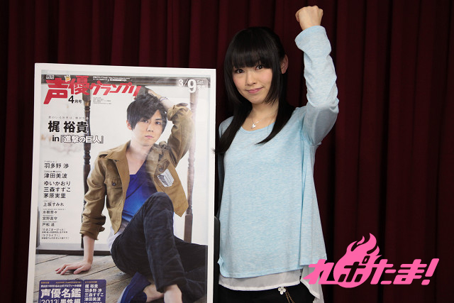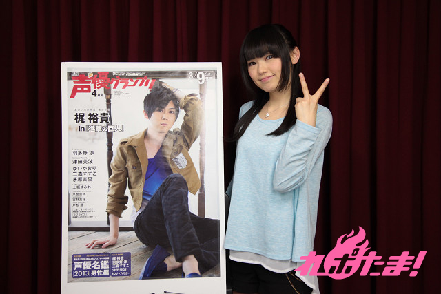 本誌では、下田さんとは同期で同じオーディション出身という、梶裕貴さんが表紙で、「進撃の巨人」に関するインタビュー特集が掲載。ほかにも声優名鑑2013の男性編が付録となっている。さらに下田さんの誕生日イベント「下田麻美おたんじょうび披露宴?!」のレポートも掲載されているのでチェックしよう。