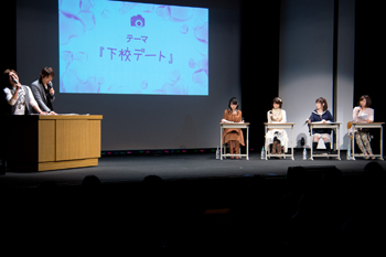プレゼンを終え、伊藤さん大亀さんは島﨑さんへ、伊瀬さんは白石さんへ投票。水橋さんは「どちらも面倒くさい」という解答で会場を笑わせた。お客さんは白石さんを推し2対2となり、下校デートの別れ際の台詞対決で決戦。