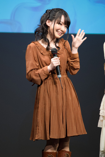 続いて水橋さん演じる実原氷里は「好きなタイプのキャラクターなので演じられて嬉しい」と演じてみての感想を話す水橋さん。どの辺が好き?という質問に「あまりしゃべらないところ」と会場を笑わせたが、これは『喋らなくても良いから楽』という意味ではなく『大人しくて無口な人は雰囲気があって良い。』という意味とのこと。