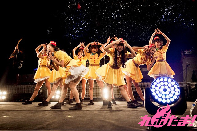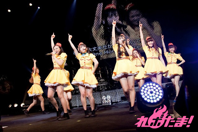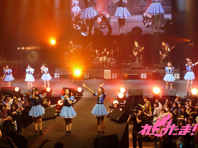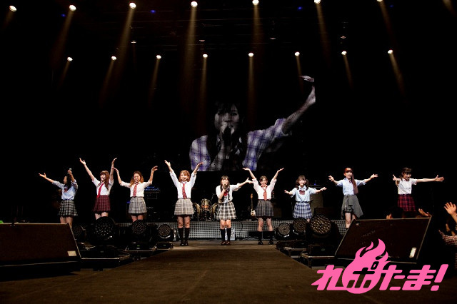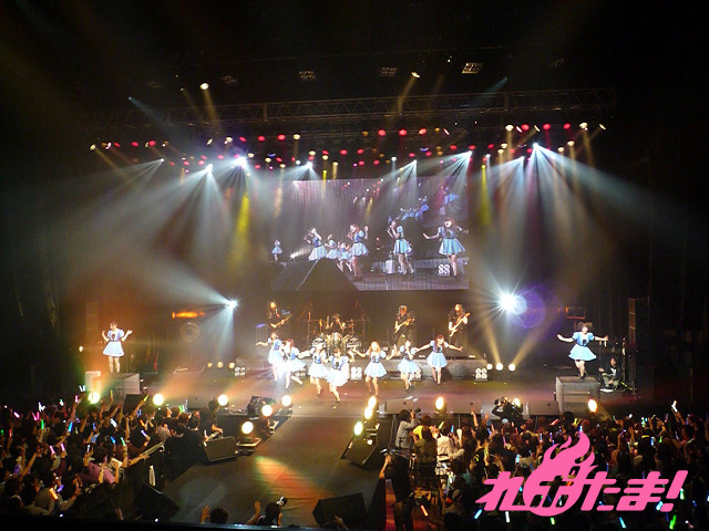 そして迎えたアンコールでは、全員が制服姿で登場するという珍しい展開が。なんでも、3月に最年少メンバーの玉井杏奈と増井みおが高校を卒業し、「No JC、No JK」(No女子中学生、No女子高生)となったことで、「この日で制服を着納めです」とのこと。その言葉どおり、アンコール曲『サクラ色』の演奏が始まるとともに制服を破り捨て、妹ユニットpalet(パレット)へ宅配便で送りだすというパフォーマンスも。