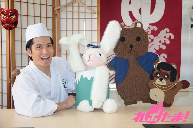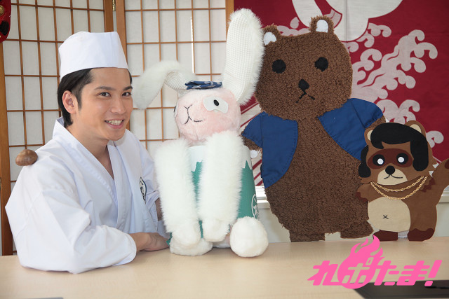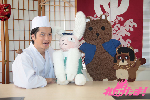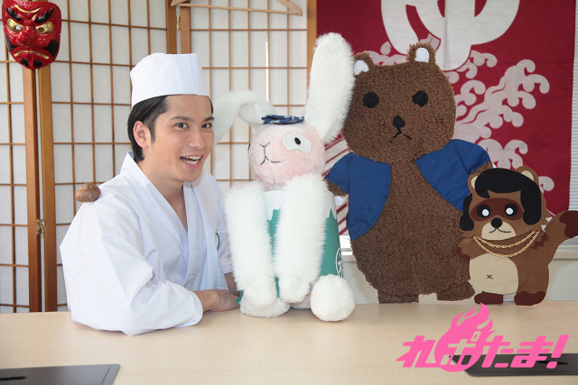 女将のオタマ、タキオのほか宴会場シンガー・タヌキオ(CV:島﨑信長)、お風呂場担当・ゴロー(CV:増田俊樹)が会見に臨み、番組の見どころを語りました!