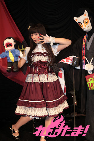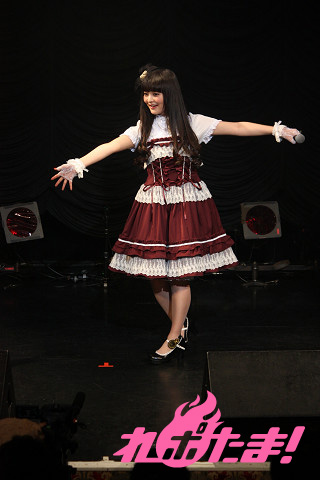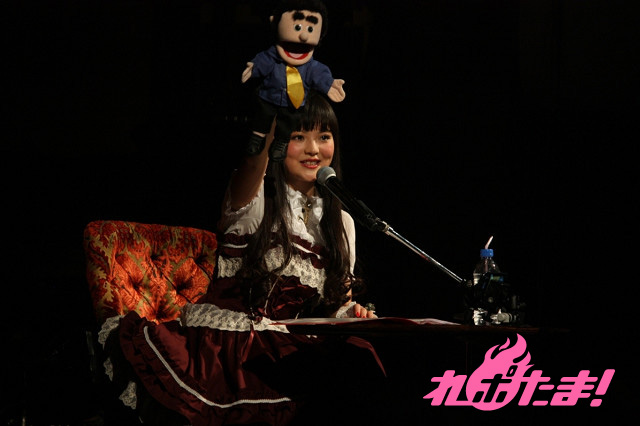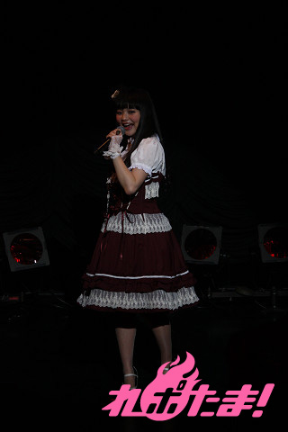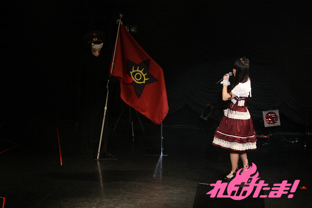 まずは前口上(影ナレ)からイベントがスタート。上坂さんの経歴が大正時代を髣髴とさせる語り口で紹介された後は、ロリータ服姿の上坂さんが登場!『パパの言うことをききなさい!』イメージソング「ソライロ」を披露。ギャラリーのサイリウムが赤から青に変わっていく様に大興奮の上坂さん。