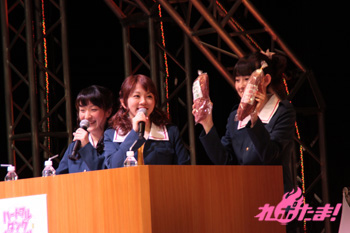 続いてはキャストによる生朗読コーナー。大洗女子学園のメンバーが、大量に余った干芋を使い色々とメニューを考え、売り物にしようと画策する、という物語。キャラクターの個性が際立つやりとりに、集まったファンは大いに沸いた。