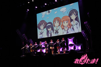 続いては再び演奏パート。顧問の先生は「先の東日本大震災で、大洗の街は風評被害に苦しみました。そんな中、『ガルパン』のおかげで町に活気が戻りました。皆さん、是非遊びに来てください!」と語り、場内から拍手が上がった。