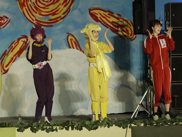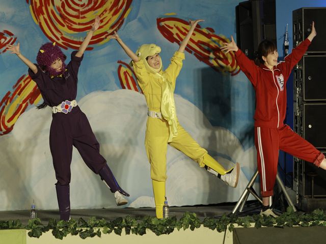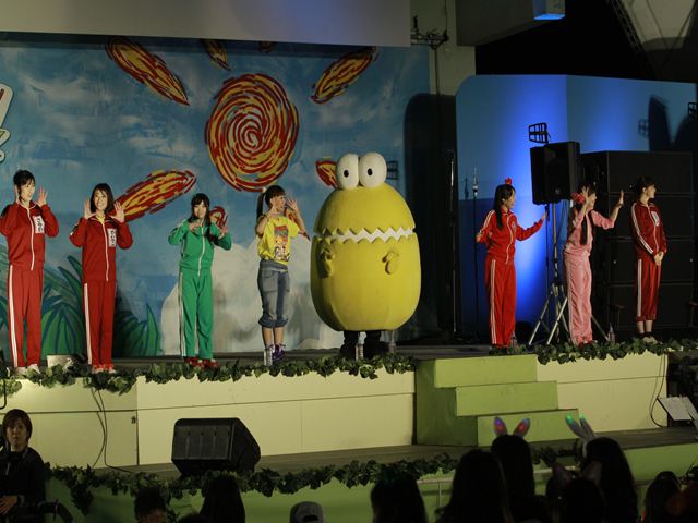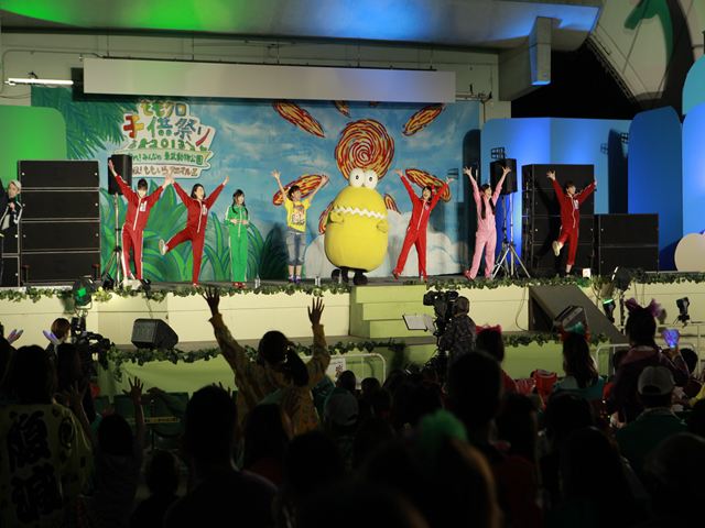 ステージにはテレ玉くんと一緒にテレ玉の山田香菜子アナウンサー、二階堂絵美アナウンサー、小室早弥香アナウンサー、音楽番組「HOTWAVE」MCの山本昇が登場。そして、ももクロの振付師で「テレ玉くんのうた」の振付を担当した石川ゆみ先生も登場し、子どもたちに直接指導。