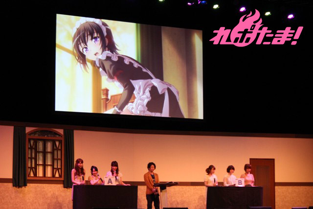 しかし圧倒的に不利な状態でありながら、花澤さんは「キミに見せるために着てみたんだよね」とのセリフで観客のハートを掴んでまさかの大逆転に成功。ここから全員が、客席へのプレゼンにも全力を尽くすようになり、山本さんが愛するゴリラとの仮想デートについて熱弁したり、メイドさんのスカートの長さについて井上さんが「本来のメイドさんの良さというのはロングスカートにあると思うわけですよ。けれどもやはりミニスカートの時のニーハイから見える絶対領域というのは……(以下略)」と長々と説いたりと、観客を巻き込んで勝負は白熱した。