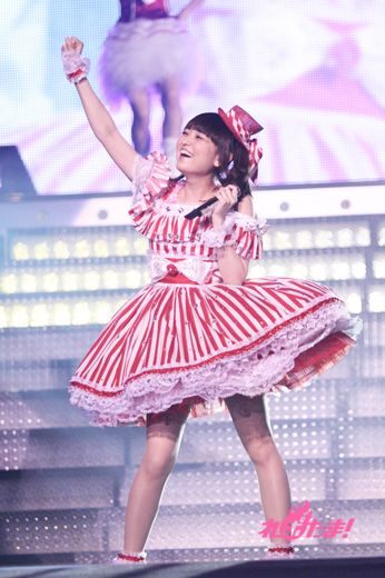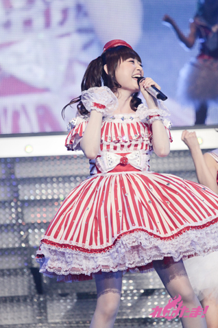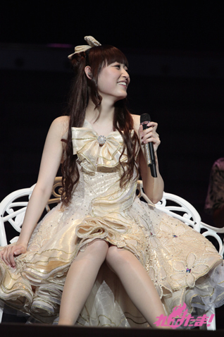 ちょっと目を伏せたものの、最後は顔を上げると笑顔で「なかなか自分に自信が持てないのでうまくいかないかもしれないけど、出来るだけ前向きに頑張って、またいつかここでみんなに会えると嬉しいなと思います。今日は本当にありがとうございました。とても楽しかったです。またね!」と語りかけ、大歓声に包まれながら投げキッスでステージを後にした。