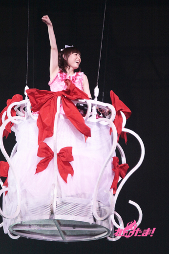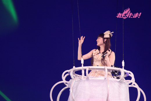 ほかにも「My wish My love」を歌いながら、ゴンドラに乗って客席上空へと舞うといった驚きの演出に加えて、最近のライブでは「もう飽きちゃったかなと思って」とご無沙汰となっていた「めろ~ん」がこの日久しぶりに復活。