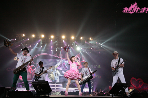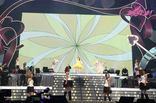 ここからはライブも後半戦。「チェルシーガール」に続き「fancy baby doll」では大コールの中、トロッコで会場を一周しながらうさぎのぬいぐるみをバズーカや遠投で会場のそこかしこへ投げ込んでいく。さらに再びゴンドラで宙を舞うと、ライブはついにクライマックスへ突入。