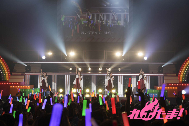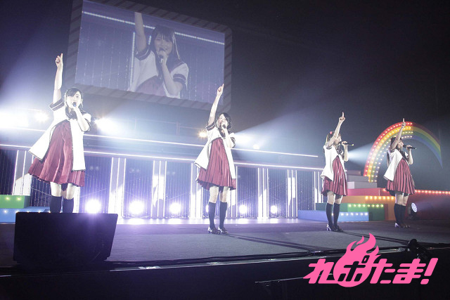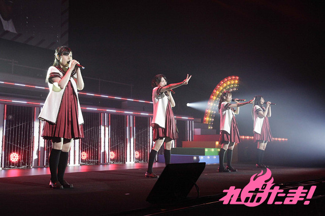 続くMCでは「え~る♪」のサビ部分の振り付けを伝授。覚えの早いファンに驚く4人、そのままの勢いで「100%ちゅ~学生」、タオルを片手に「いぇす!ゆゆゆ☆ゆるゆり♪♪」を披露していった。