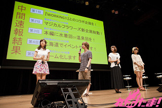 さらに、『WORKING!!』のヒロイン、種島ぽぷら役の阿澄佳奈さんから応援演説が! しかし「北海道に行きたい」と本音がポロリする一幕も(笑)。