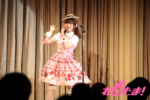 そして「まだ終わりたくな~い!」と、『ラブライブ!』のキャラクターソング「sweet&sweet holiday」を、客席のテーブルの間を縫いながら披露し、この日一番オ盛り上がりを見せた。