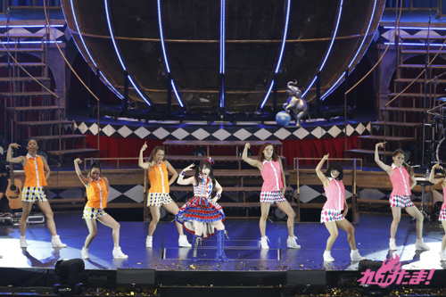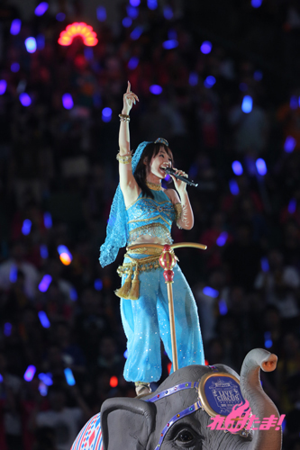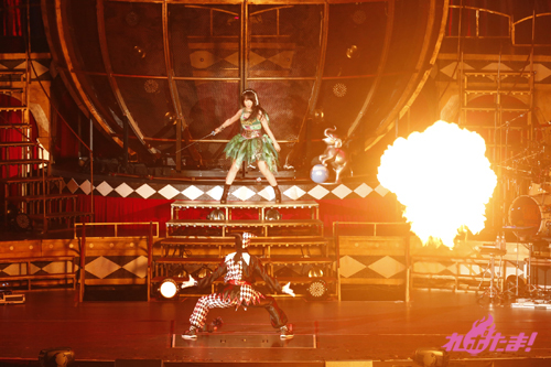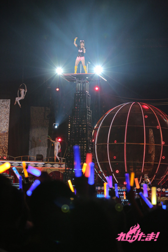 「LIVE CIRCUS」冠されているだけあり、開幕と同時にピエロやアクロバティック集団“Gロケッツ”が登場し、コミカルで刺激的なパフォーマンスを披露。奈々ちゃんも「ナンボ」と名付けられた象のオブジェの上に立ち熱唱するなど、サーカス会場さながらの演出にファンも大熱狂!
