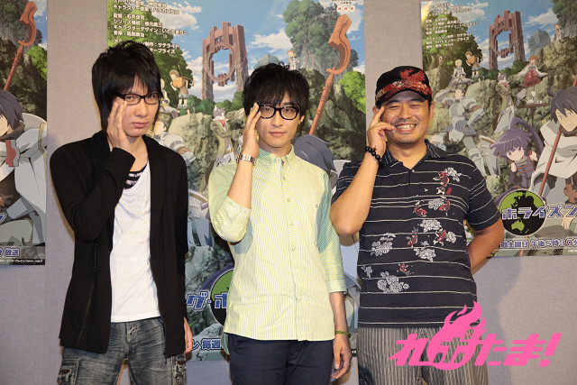 2013年10月5日(土)より放送開始される橙乃ままれ原作の『ログ・ホライズン』。その試写会が都内で行われ、シロエ役の寺島拓篤さんと直継役の前野智昭さん、そして監督を務めた石平信司氏が登壇。