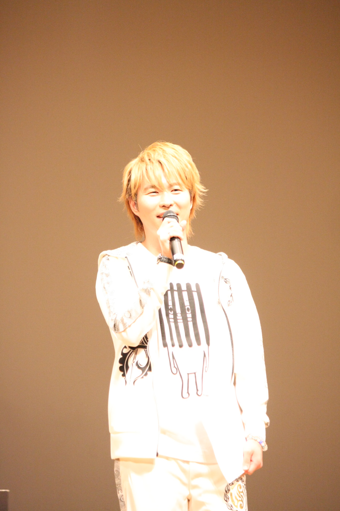 OPトークは、安元さんはスタッフが用意したジャージに対し「地方のヤンキーも真っ青だよ」とイベントではおなじみとなったスタッフいじりに続き、ゲストの呼び込む2人。「彼はメイクに時間がかかるの。みんなに見てほしいからこだわりもすごくて。最近、金髪にしましたこの方です!」という小西さんの呼び込みで代永さんがステージに登場。髪型を見た小西さんは「お前、編み込んでんじゃねぇか!」とファッションチェックから。恐縮する代永さんも白いジャージ姿だが、「(下着が)透けそうで怖い」と後ろを気にする仕草に客席からは「かわいい~」の声が上がった。