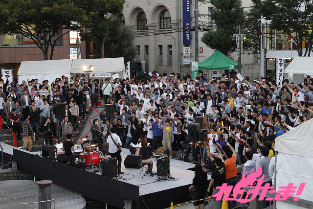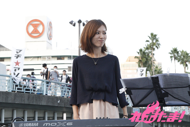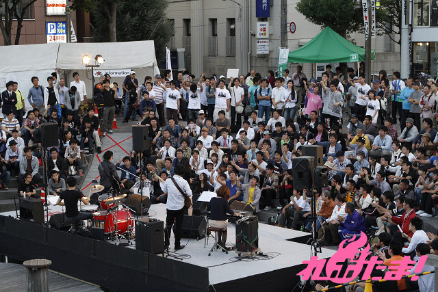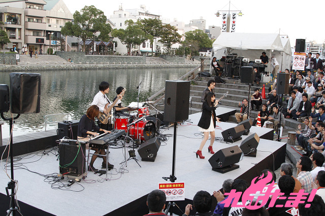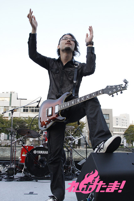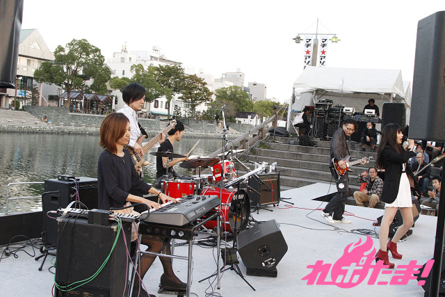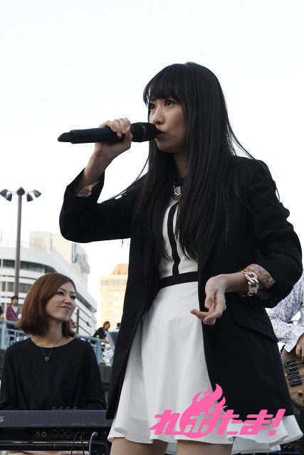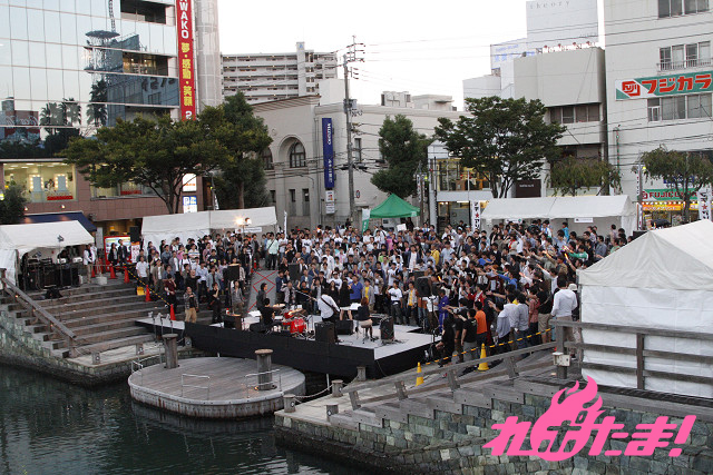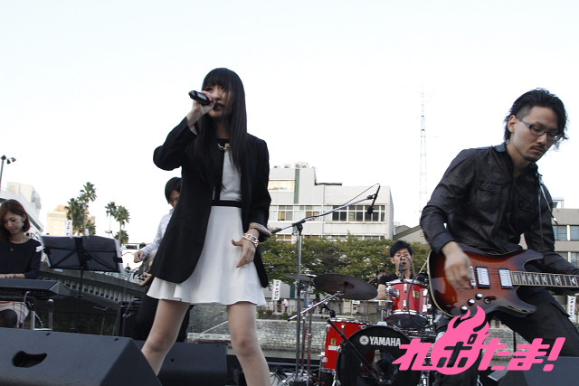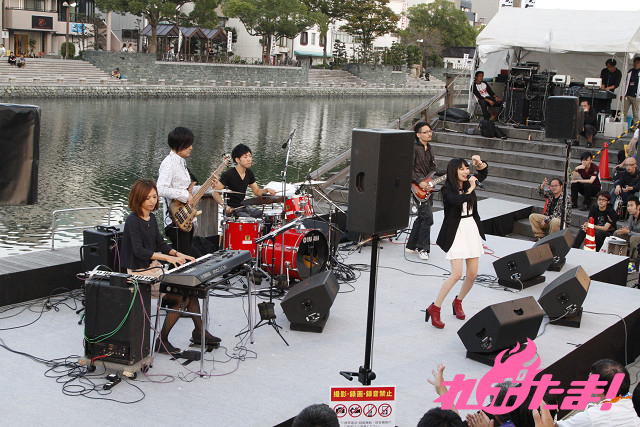 13日には新町東公園ステージにてヴォーカルのUYUとギターの阿部隆大によるロックバンド・ACRYLICSTABのライブが行われた。まずは「LOVELESS」を挨拶代わりに披露。今回は持山翔子(キーボード)、小山尚希(ベース)、工藤 明(ドラムス)によるジャズバンド・m.s.t.による生演奏とともにステージを展開するとあって、場内は、のっけからヒートアップ!