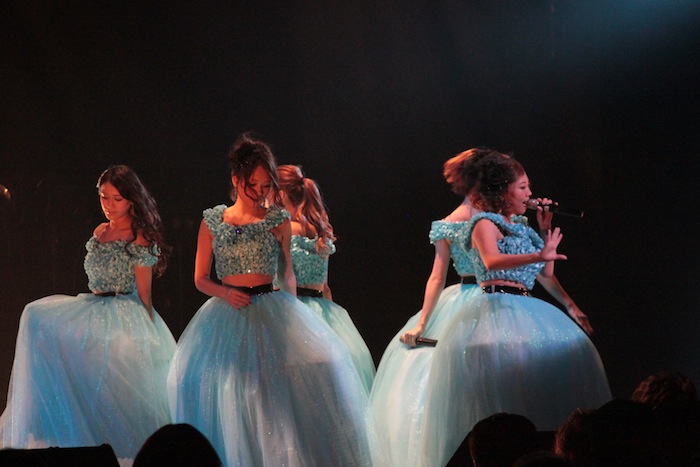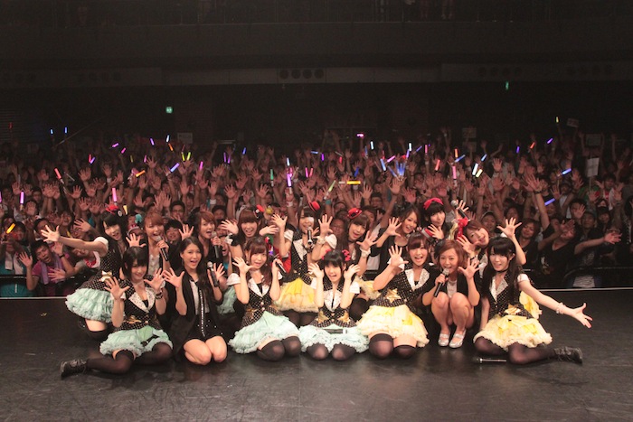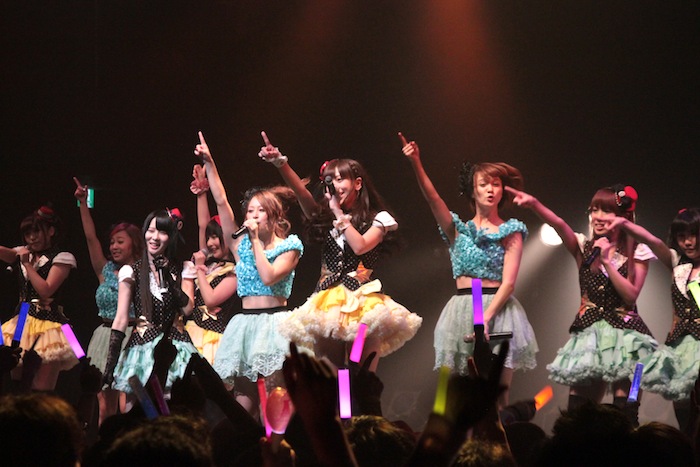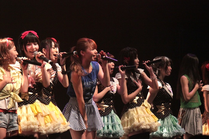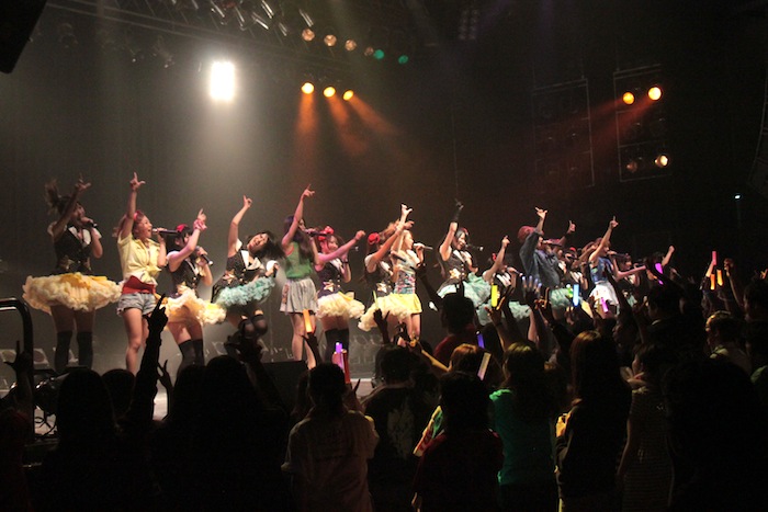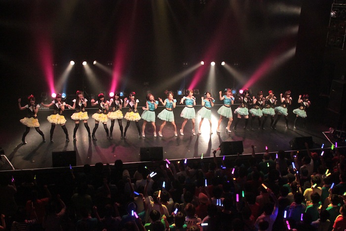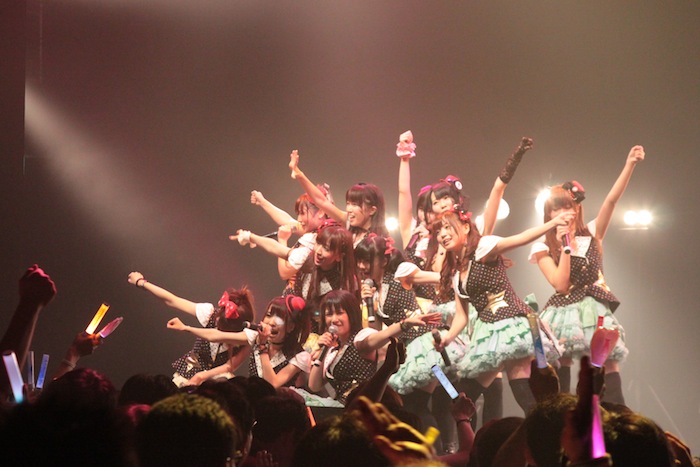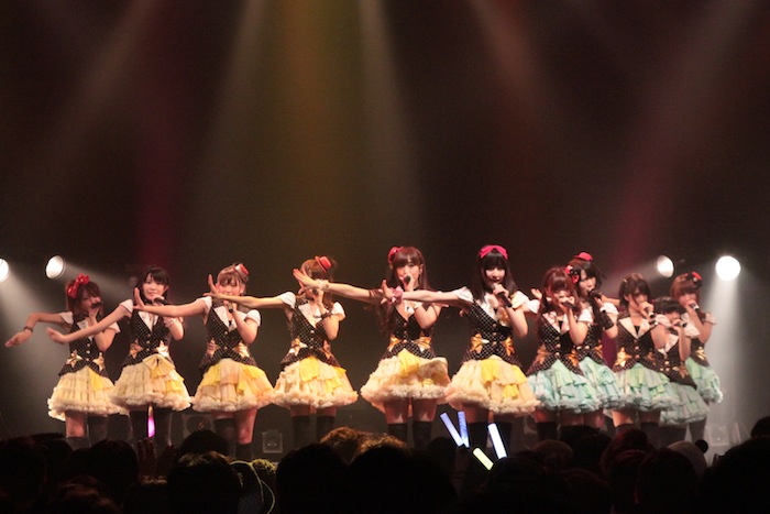 第1部では、それぞれのユニットが5曲づつと、2組全員が参加した16人で歌うコラボ曲を2曲という構成で集まったファンを沸かせたが、圧巻だったのは夕方から行なわれた第2部。それぞれ約10曲づつ披露した上で、コラボ曲も全4曲を披露。