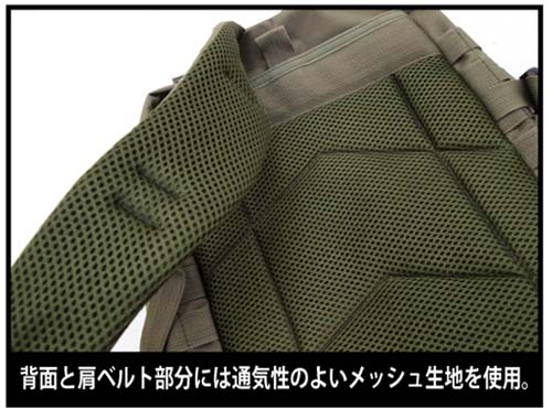 米軍も採用している装備品の規格「MOLLEシステム」と呼ばれる拡張用ベルトは、便利さだけではなく、使いやすいようにオリジナルカスタムも楽しめる!