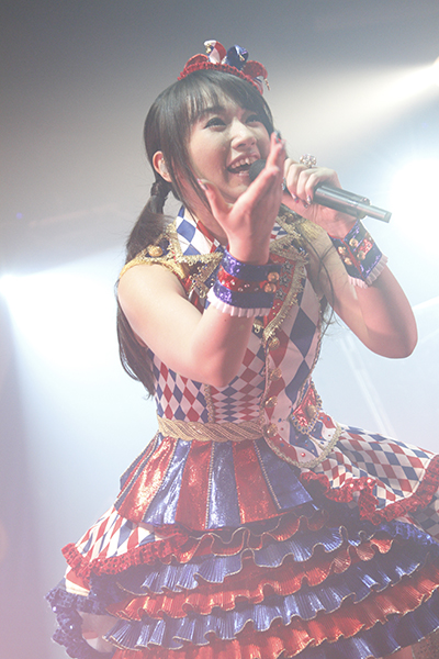 ブルー系をベースにした和テイストの衣装に着替えた水樹が再びステージに登場し「Get my drift?」を披露。ここでも本来CDではコーラスがはいっている部分を会場が熱唱するなどの光景がみられた。続いて1日目とは違う「純潔パラドックス」のイントロが流れ始めると会場からは大歓声があがった。そしてこの後も1日目とは違う「BRIGHT STREAM」を歌唱。「BRIGHT STREAM」はofficial Facebook上で事前に集められた好きな楽曲アンケートで4位になった楽曲だ。歌い終わった後に「謝謝」という水樹からの投げかけもあり、会場からはまたも大きな歓声があがっていた。