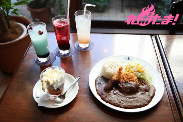 ハンバーグ・エビフライ・牛肉コロッケにビーフカレーをたっぷりかけた ボリューム満点の欲張りプレートです。