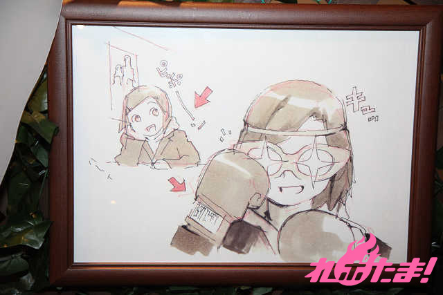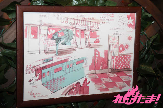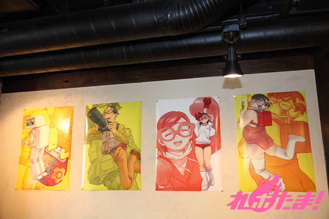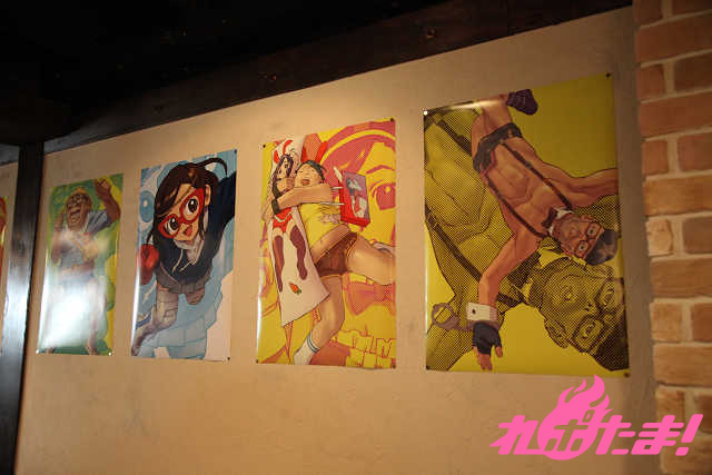 ▲店内の様子。ゲームに登場するキャラクターたちの特大ポスターや設定画を展示。