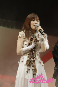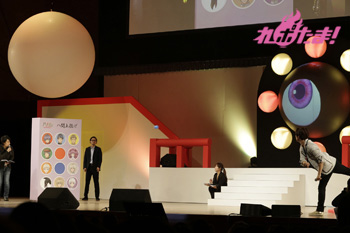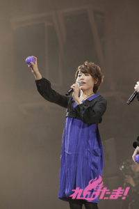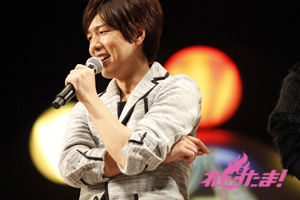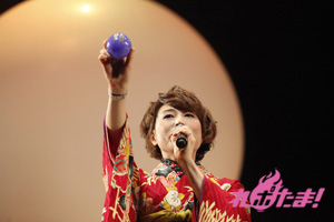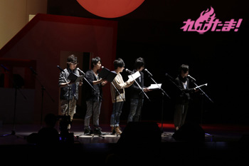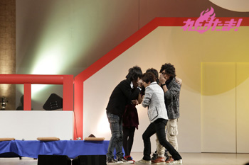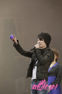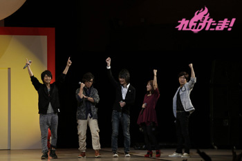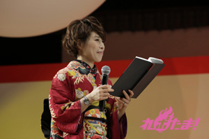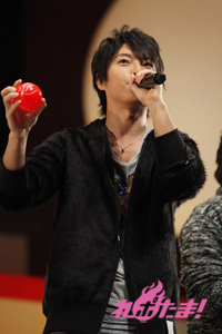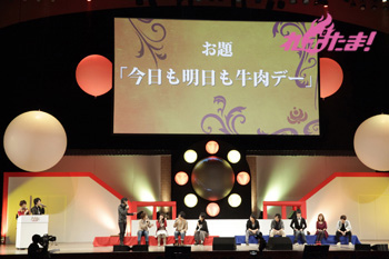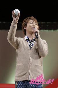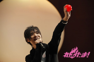 必死に言葉を伝えるリーダー2人の姿、そして距離の遠さになかなか玉をボードに当てられないキャスト陣と、どちらも爆笑のゲームコーナーとなった。勝敗の決定は「どちらのチームが、よりチームワークがよかったか」を会場のファンが決めるということで、入場時に配られたシートで表示。会場は青が多かったということで、神谷率いる青チームが勝利し、黒豚マンを手に入れた。
