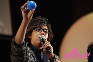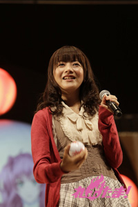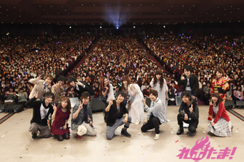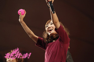 まずはキャスト全員が本イベントへかける意気込みをそれぞれの玉に込めてきたと、漢字一字を記したボールを取り出す。「喜」「愛」「楽」などイベントへの思いが書かれたそのボールは、キャストそれぞれが、客席へと投げ込んだりバズーカ砲を使ってファンへと届け、受け取ったファンにサプライズプレゼントとなった。