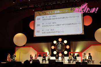 そんなトークの後には、公式サイトで募ったファンアンケートをもとにした人気投票「恋人にしたいキャラ」「マスコットキャラNo.1」、そして「ベスト感動シーン」の結果発表が行われた。