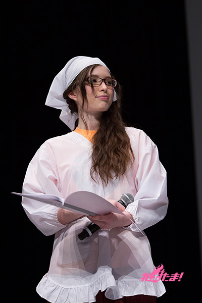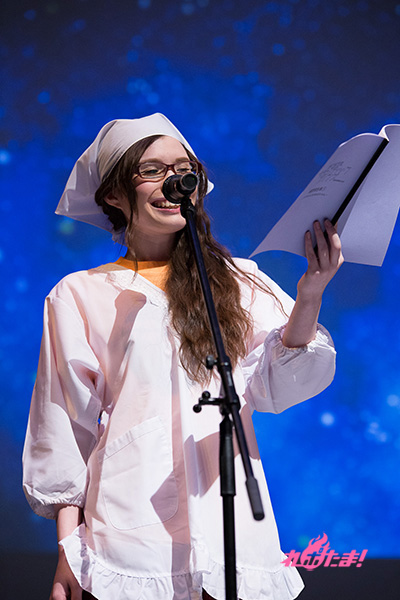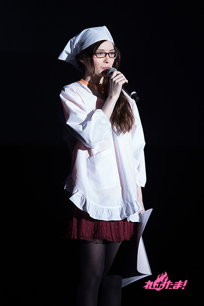 イベントは昆さんのライブからスタート。本作の第1クールのオープニングテーマ「私は想像する」を透き通るような歌声で聴かせて会場を温める。昆が歌い終わると、三角頭巾にエプロンというナトリ・シオンのコスプレ姿をしたブリドカットさんが司会進行役として現れ、キャスト陣を紹介していく。