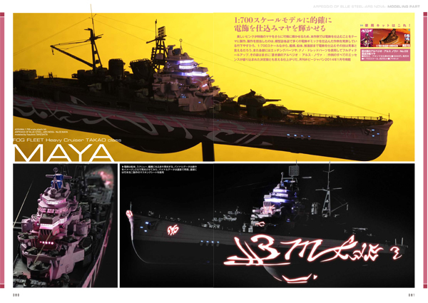 基本的な設定の解説から、巡航形態、超重力砲形態、ウォーターライン仕様と20隻以上の艦艇作例を掲載するほか、モデラーのための6面図や縮小バイナルパターン全集など、大ボリュームの内容となります。