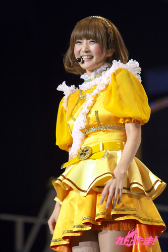 そして、花道をわたり、会場中央にやってきた9人。「せっかくなので、会場にいるみんなと一緒に振り付けを楽しみたいと思います!」と叫び、「No brand girls」で会場中が一体となった。