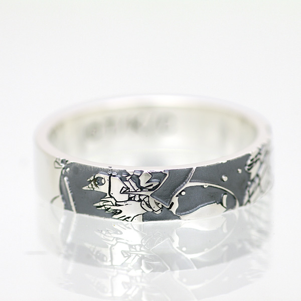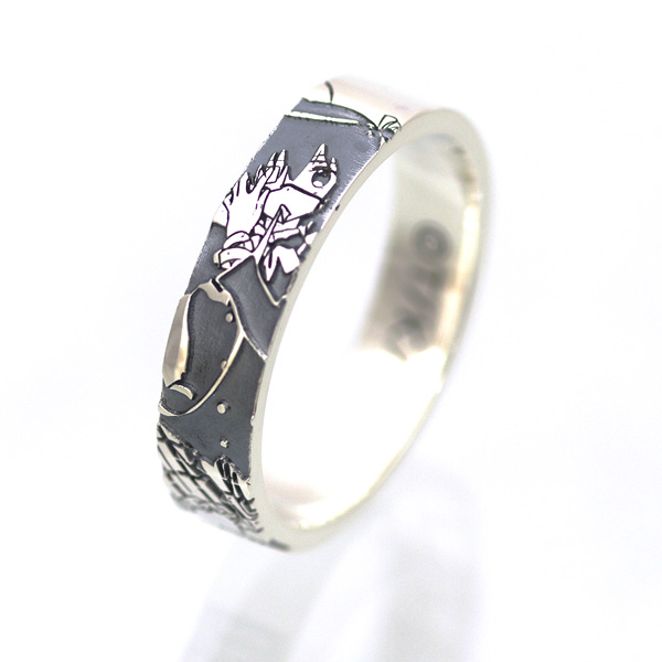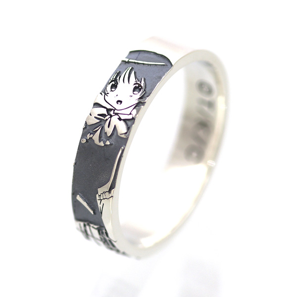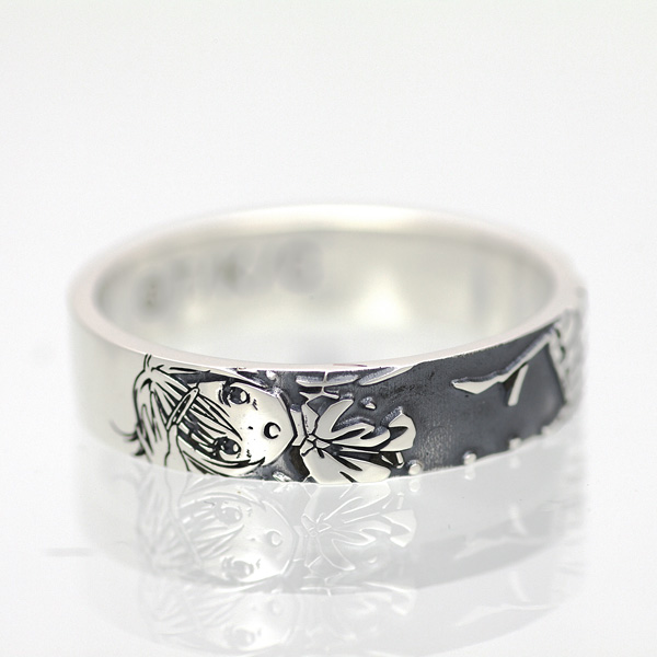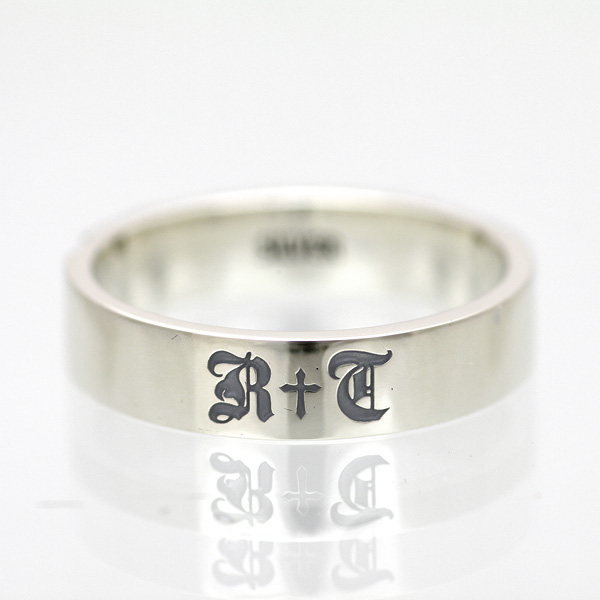 元「中二病」の方にも、巾5mmのリングはシルバーデビューに丁度いいサイズ。ヒロインたちのイニシャルが彫刻された面を表にして、さり気なく身に着けてみよう!