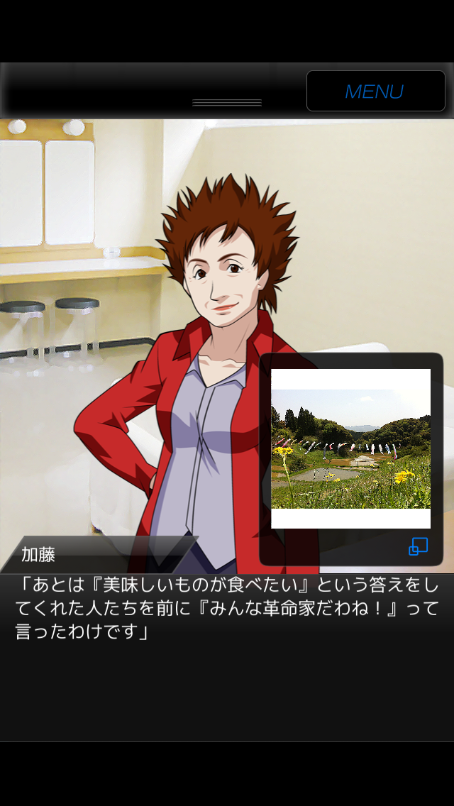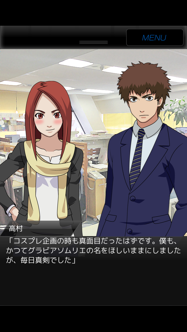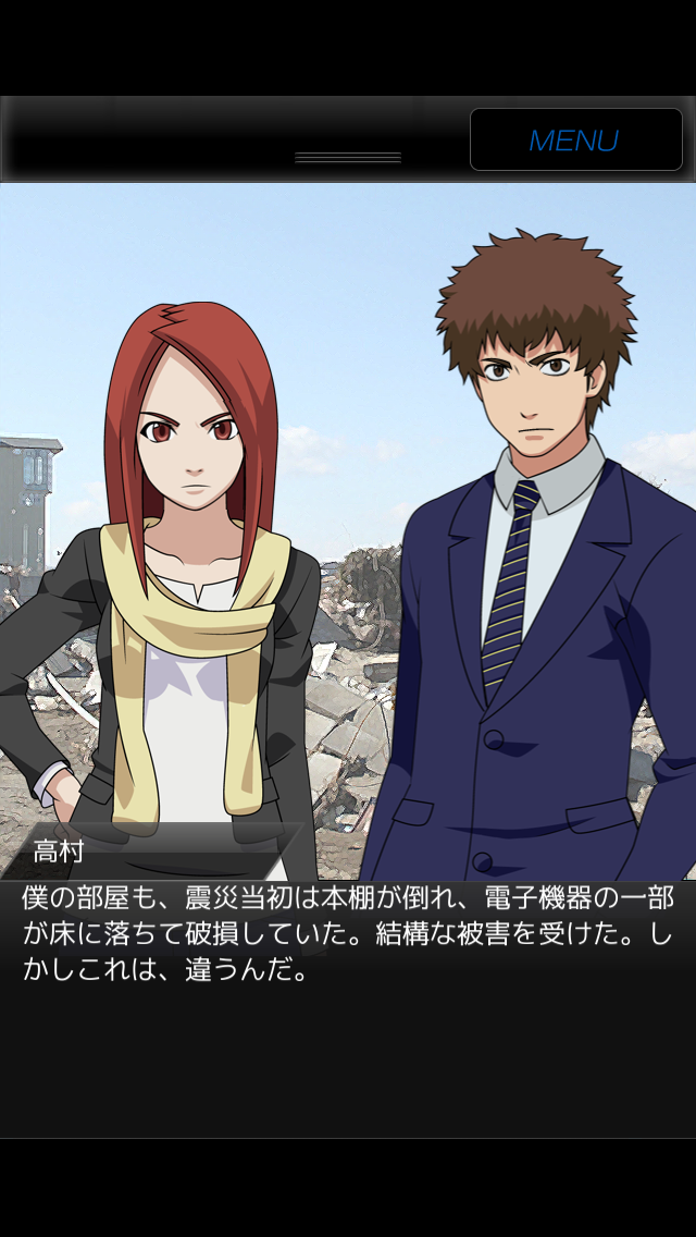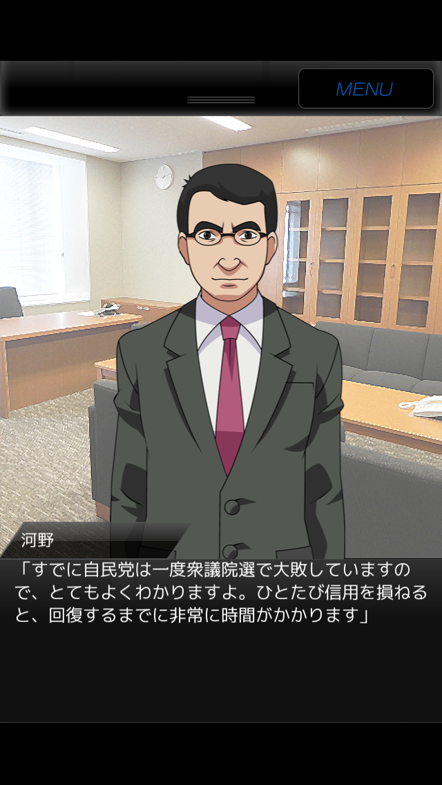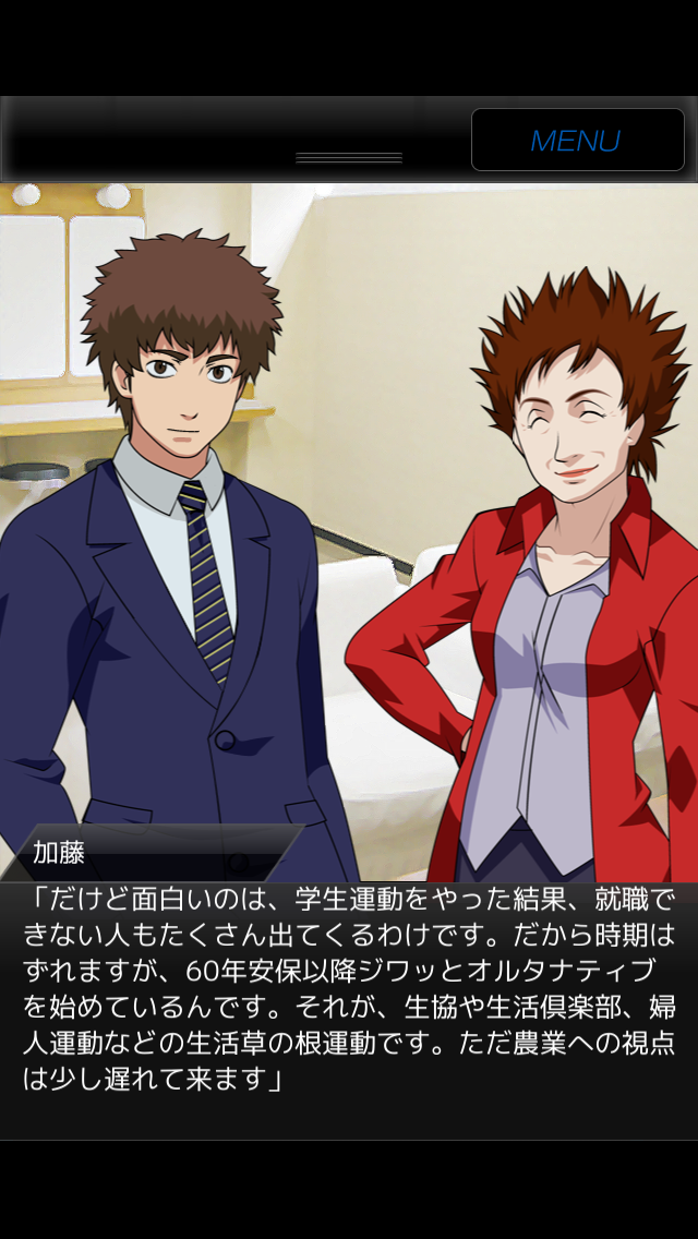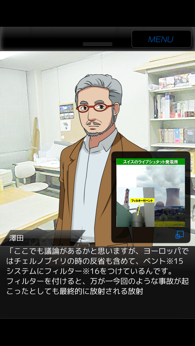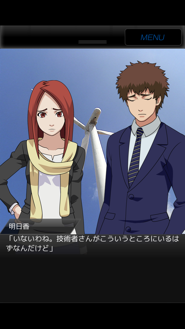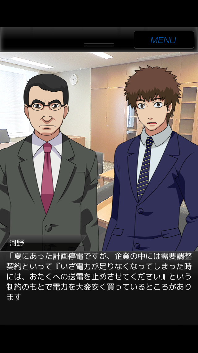 ユーザーは新人記者となり、先輩の女性記者と共にエネルギー問題に関わる取材対象者にインタビューをしていきます。