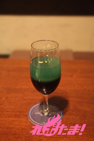 グレナデンとグリーンミントシロップの甘さが特徴。よくかき混ぜて飲もう!