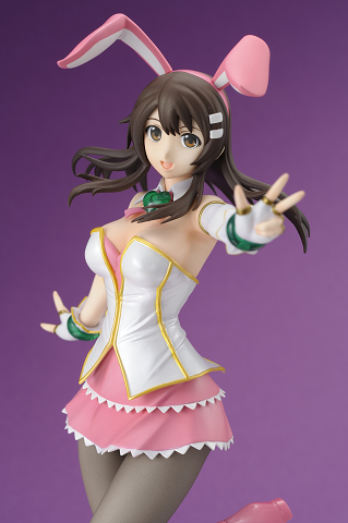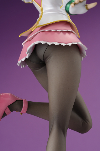 こぼれそうなバスト、翻るミニスカと、フィギュアならではのアレンジを加えた躍動感のあるポーズに仕上げました。 衣装の部位ごとに微妙な変化を付けた素材感のある塗装もポイントのひとつです。